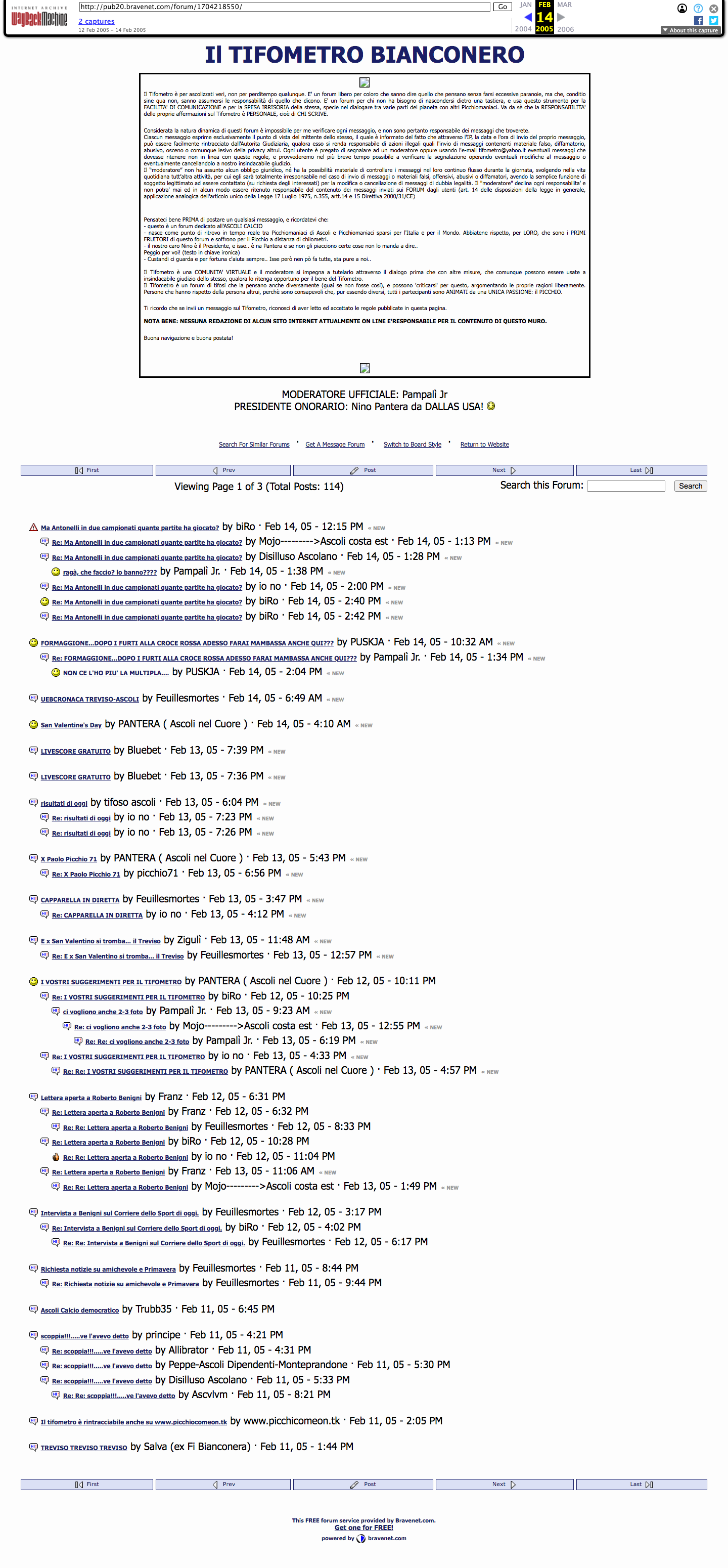 Il primo logo! Pagina del 1999! La versione "Bravenet" 2.0 del 2005 Immensamente grazie a tutti quelli che hanno reso possibile il forum, alla loro cura nel tempo (cito gli storici Nino Pantera, Aroldo Cambi e Claudio Mezzasalma "Cobra", oltre tutti i tifosi bianconeri che hanno dato o stanno dando l'indefesso supporto tecnico-informatico, di moderazione, e ovviamente affettivo in quanto "di cuore bianconero"), e ai Picchiomaniaci tutti a popolarlo da così tanti anni!